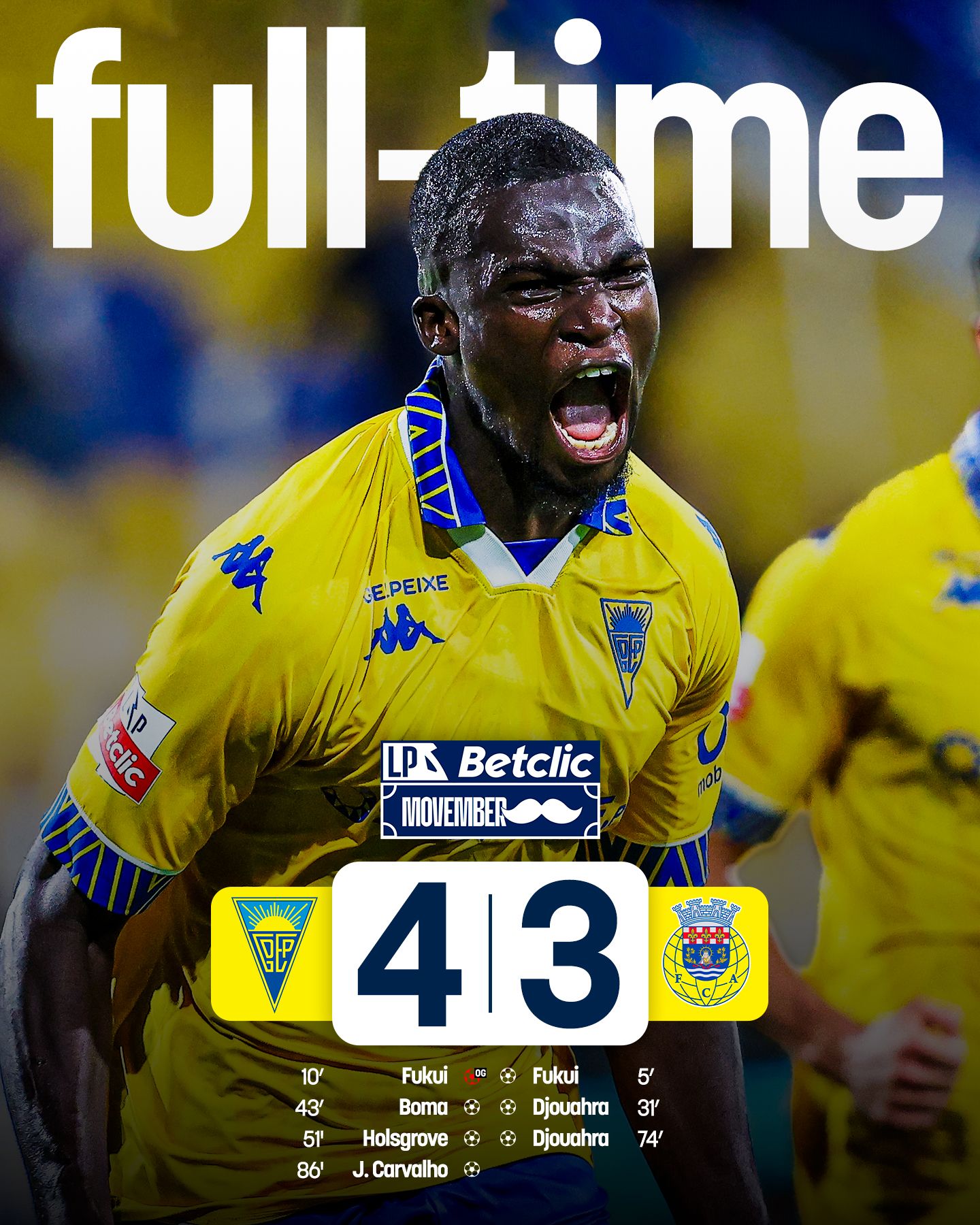 Em partida com sete golos, os canarinhos triunfam por 4-3
