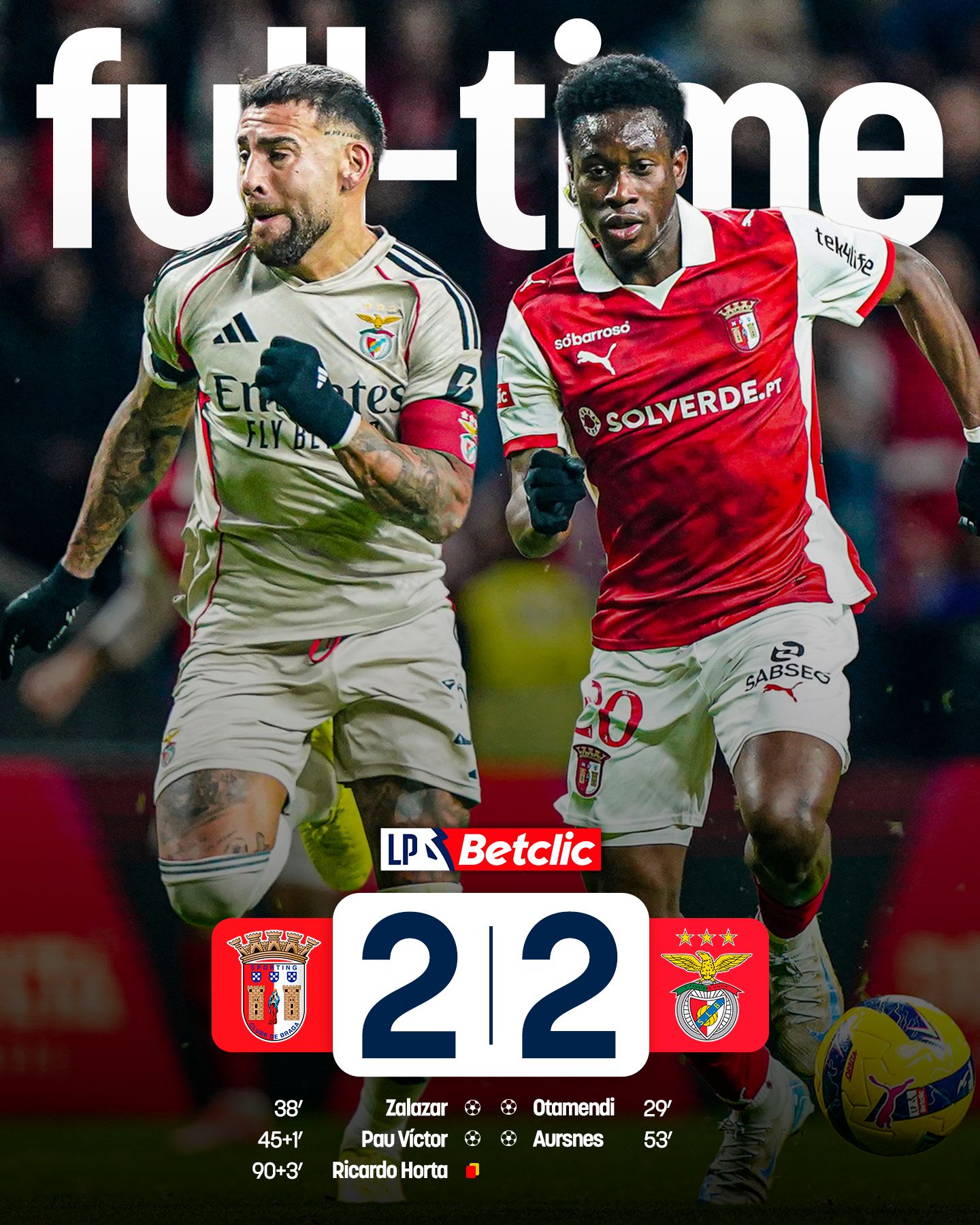 SC Braga e SL Benfica estiveram ambos em vantagem em partida muito intensa