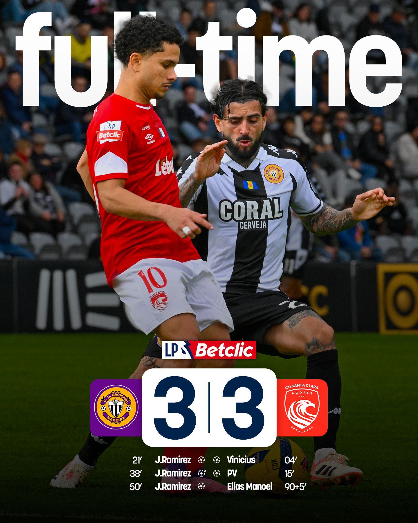 CD Nacional e Santa Clara empatam em festival de golos