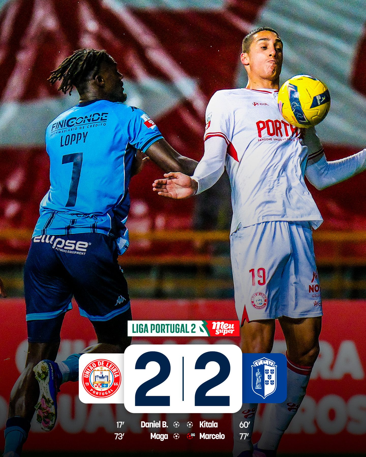 Daniel Borges e Miguel Maga marcaram para a U. Leiria, enquanto Kitala e um autogolo de Marcelo nivelaram a contenda para o FC Vizela