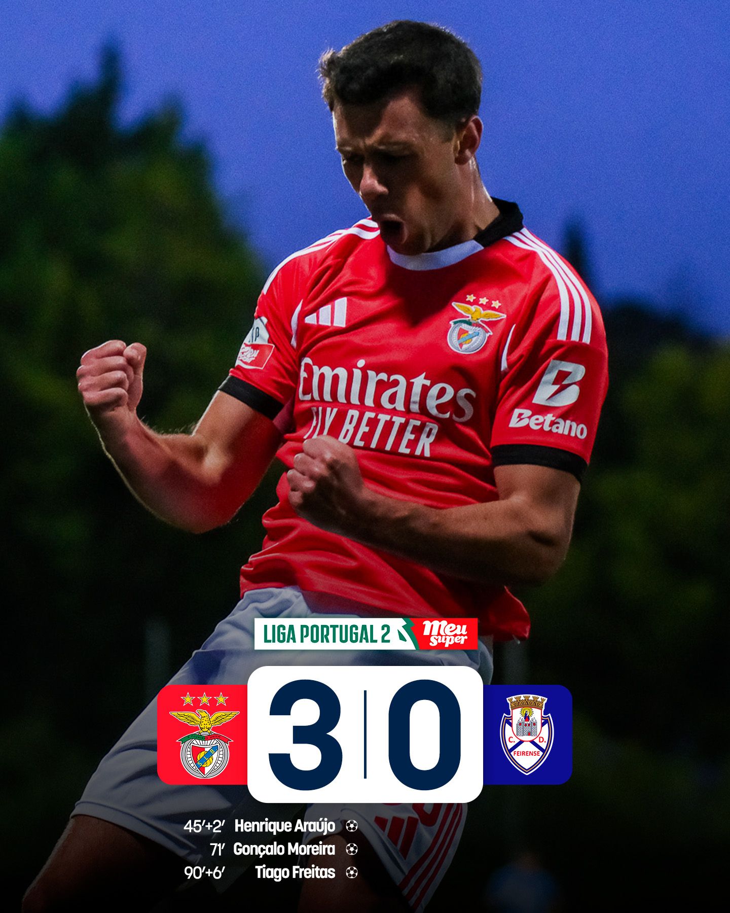 Encarnados vencem por 3-0 e reforçam presença na primeira metade da tabela classificativa