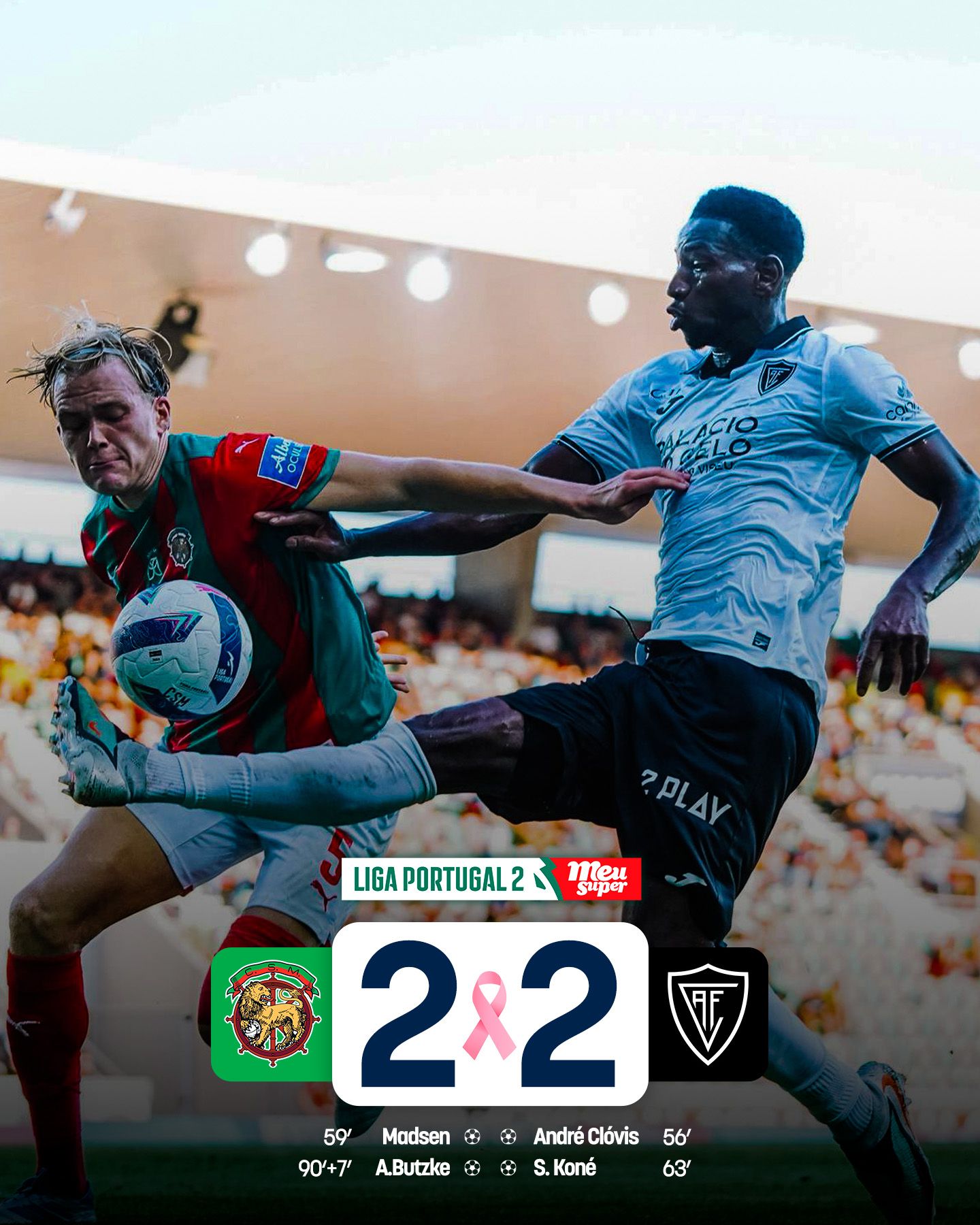 André Clóvis e Samba Koné marcaram para os visisenses, Noah Madsen e Adrián Butzke para os insulares